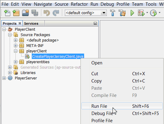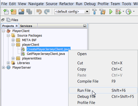 Projectsウィンドウで「CreatePlayerJerseyClient.java」を右クリックし、「Run File」を選択します。