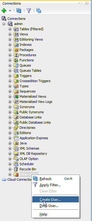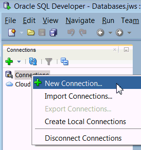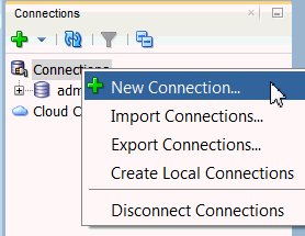 SQL Developerの接続タブで、接続を右クリックし、ポップアップメニューから接続の作成を選択します。