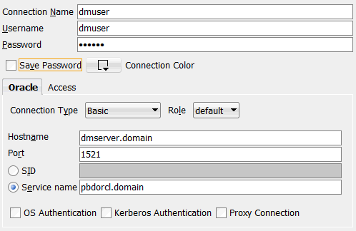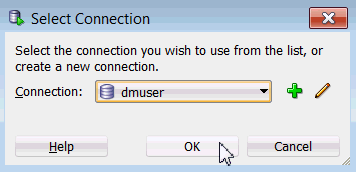 B. 以下のように、Connectionリストからdmuser を選択します。その後、OKをクリックします。