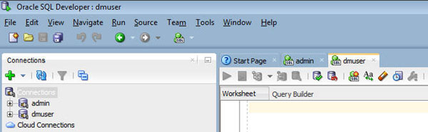 注記: SQL Developerの接続タブで接続を実行すると、接続ユーザー用のSQL Developer Worksheetが自動的に開きます。