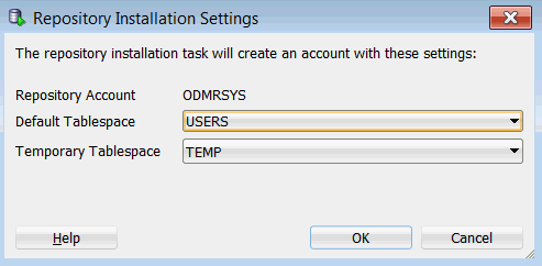 A. ODMRSYSという名前のレポジトリアカウントのデフォルト表領域と一時表領域を選択します。