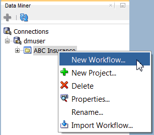 以下のように、Data Miner タブで、dmuserを右クリックし新規プロジェクトを選択します:
