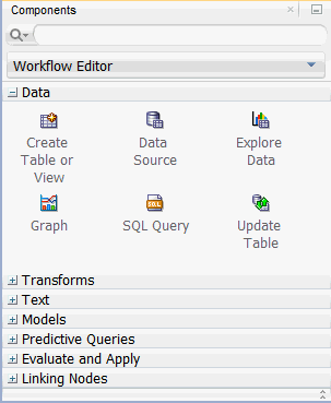 - また、他の3つのOracle Data Minerインタフェース要素が左側下部に開いています: