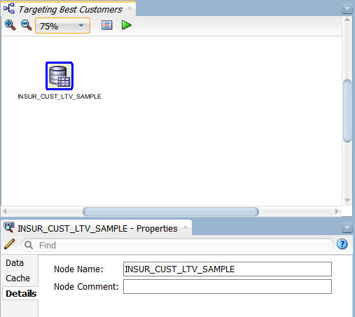 新しいデータソースノードを選択し、プロパティタブの詳細セクションを使って,以下のようにノード名をINSUR_CUST_LTV_APPLYに変更します: