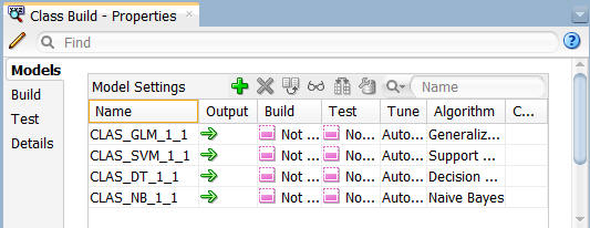 ワークフロー上で、分類構築ノードを選択します。次に、[プロパティ]タブからモデルセクションを表示し、DTモデル以外のモデルの選択を解除します.