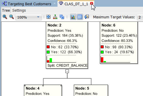 以下にあるように、ディシジョンツリーの表示タブを閉じます: