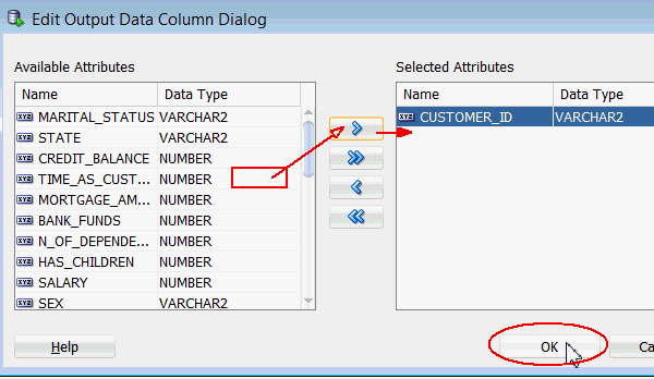 この情報を取得するには、適用されたアウトプットに3つめの列:CUSTOMER_IDを追加する必要があります。アウトプットに顧客IDを追加するには次の手順に従います: