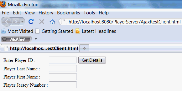 ここでは、RESTful Webサービスを消費するクライアントとして動作する、AjaxベースのHTMLページを作成する方法について説明します。このRESTful WebサービスはPlayerServerアプリケーションによって生成されます。
