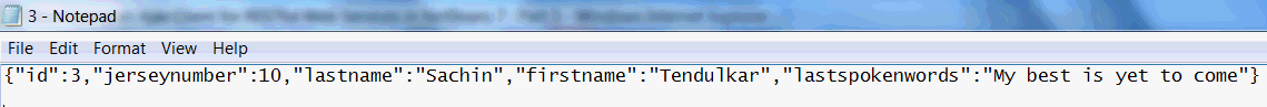 c. レスポンスをメモ帳で開きます。プレーヤーID '3'のプレーヤーの詳細情報がJSON形式で返されています。