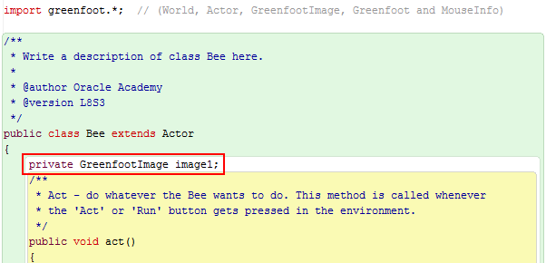 - Add the code required for the constructor to create the image as a GreenfootImage class.