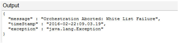 - ホワイト・リスト。事前に定義されたキー入力からのデータのみをオーケストレーションに対して許可する ことで、初期の合否チェックを提供するオーケストレーションのコンポーネントです。このホワイト・リストに は、EquipmentNumberキー入力が含まれています。これは、IoTオーケストレータが有効な設 備番号を受信した場合にのみオーケストレーションを処理することを意味します。オーケストレーションのホワ イト・リストが無効な設備番号を受信した場合、オーケストレーションは終了します。