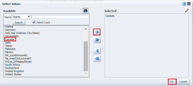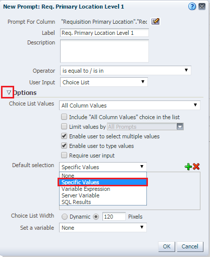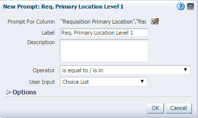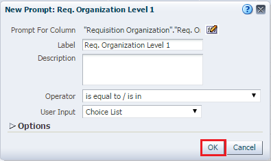 Click OK to exit the value selector. Click OK to exit the new prompt dialog. |
