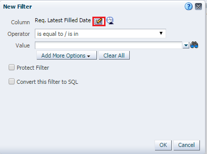 We will recreate the BO filter Req. Latest Filled Date Between 7 Days ago And Current Date. There are dynamic date filters that can be combined with custom sql to re-create this filter, but we will use the timstampdiff function to recreate this filter. Create a new filter.
