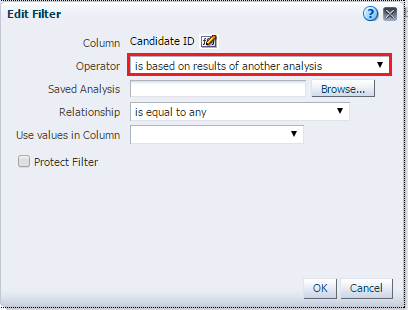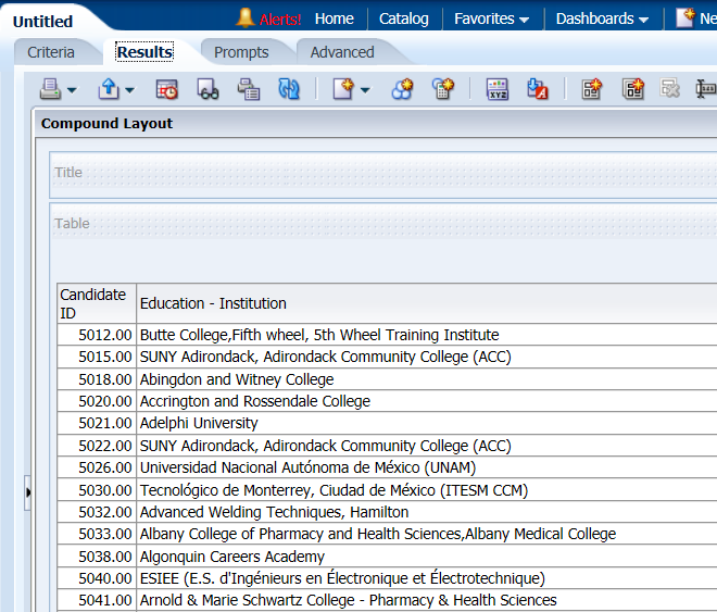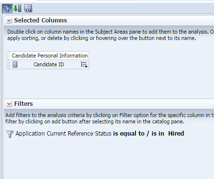We will create an analysis to bring back the list of educational institutions by candidate id. Create the analysis using theRecruiting (Legacy) subject area.