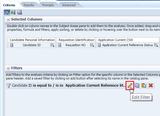 Also add a filter for Candidate Address Line 1 is not null and Candidate Email is not Null. The analysis criteria looks like this: