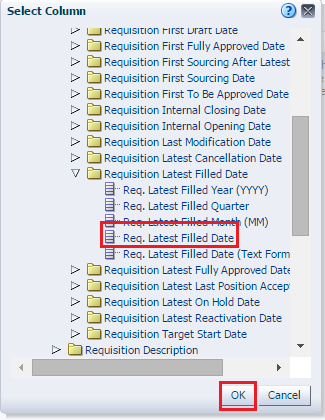 Select the column Requisition > Requisition Latest Filled Date > Req. Latest Filled Date.