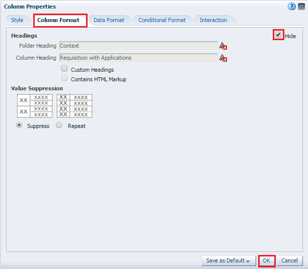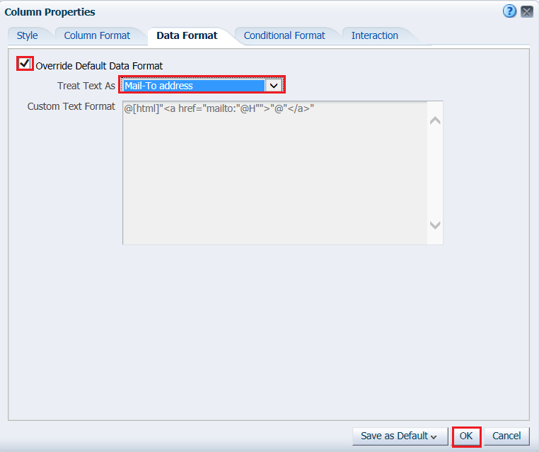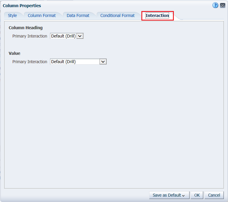We will edit the HTML analysis to add an external link. In the criteria tab edit the column properties of the Candidate ID column and go to the Interaction tab.