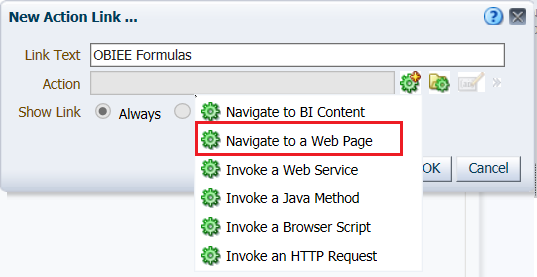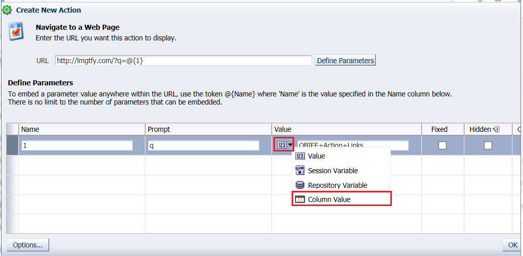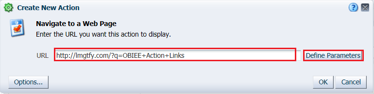 Enter http://lmgtfy.com/?q=OBIEE+Action+Links as the URL.