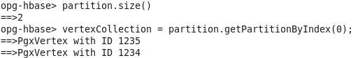 // Create in-memory Session session=Pgx.createSession("session_ID_1"); // Press Enter after the "Bind an actual implementation of IEditorRegistry..." message // Create an Analyst from the in-memory Session analyst=session.createAnalyst(); // Read the graph from database into memory pgxGraph = session.readGraphWithProperties(opg.getConfig()); // create a helper function for printing def p(v) { s1=v.getProperty("name"); \ if (s1.length() > 30) return s1; \ s=s1; \ for (int idx = 0; idx < 30 - s1.length(); idx++) \ { s=s+ " ";}; \ return ("vertex " + s + " id " + v.getId()); \ } -