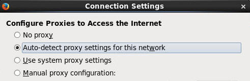 - In the Connection Settings dialog, select the Auto-detect proxy settings for this network option (as shown below) and click OK.