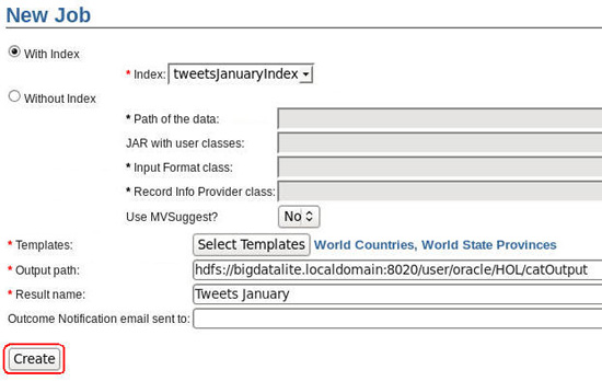 Then, in the New Job form, select the With Index option and tweetsJanuaryIndex