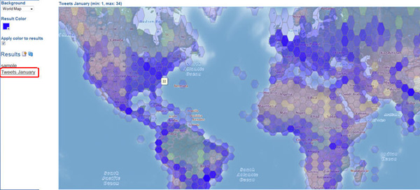 In the options bar to the left of the map, select World Map as the Backround option, and click the Tweets January link under the Results heading.