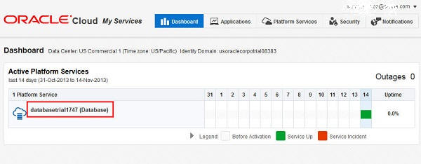 An Identity Domain Name and Service Name are automatically assigned when you request a free trial service. (You can customize this name when you purchase an Oracle Database Cloud Service. In a trial, Oracle also automatically assigns you the role of Account Administrator for the service.