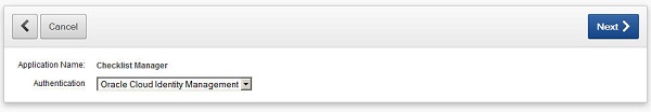 There are 2 types of authentication you can set for this application, Oracle Cloud Identity Management and Application Express. Select the default Oracle Cloud Identity Management and click Next.