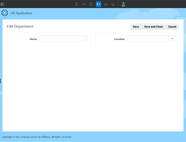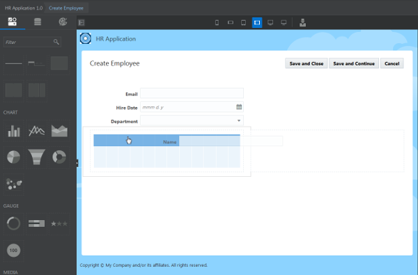 In this section, you'll design the existing Create Employee, Edit Employee, Create Department, and Edit Department application pages using the Layout components.