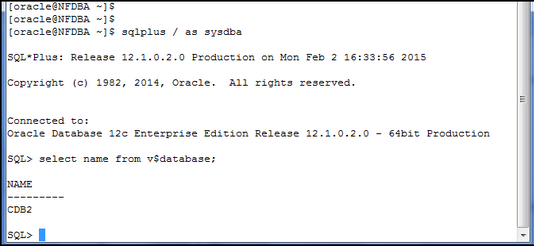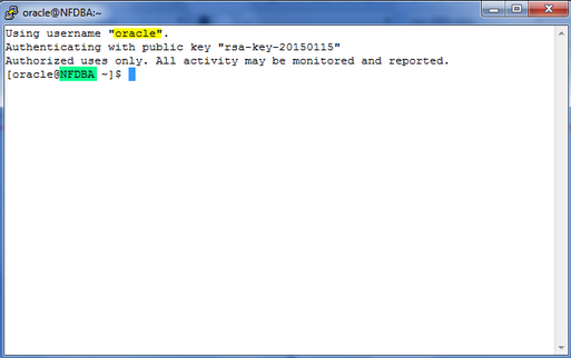 - The username can be either oracle or opc. The opened connection uses the default user oracle. Another connection can be created to connect under opc to perform sudo commands as root. The DBaaS instance name is NFDBA.