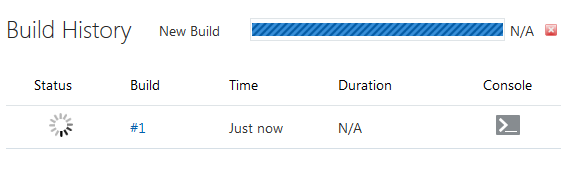 In the Build Hisotry table, track the build's status.