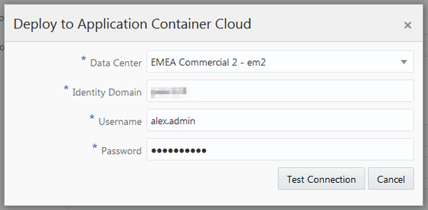 Deployment Target: Select a predefined Oracle Application Container Cloud Service target or create one.