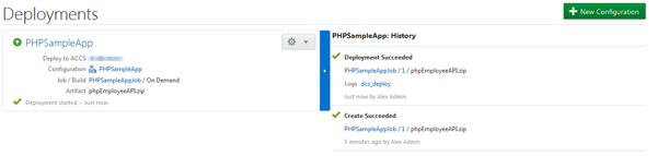 In this section you will create a deployment configuration that will deploy to the PHP application archive to Oracle Application Container Cloud Service.