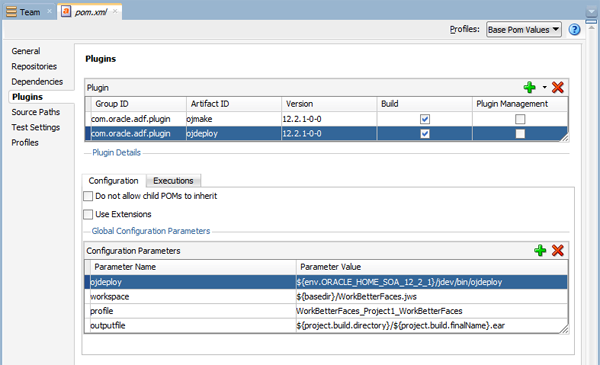 In the Plugin table, click the leftmost column of the second row to select the ojdeploy plugin row.