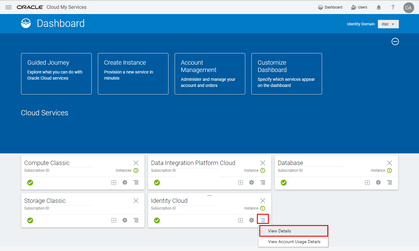 - Administrator credentials for your Oracle account's My Services dashboard. This user is the administrator for all Oracle Public Cloud Services for this account (in this identity domain.). (Let's refer to him as the super admin for this tutorial.). In this tutorial, the username for this administrator is DomainAdmin.