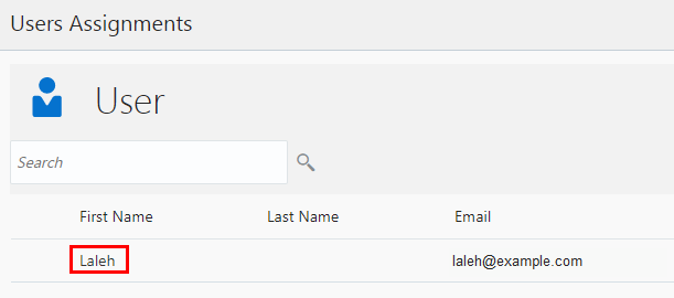 - Click the 1 Users Assigned link and confirm that Laleh is in the list of Users Assignments.