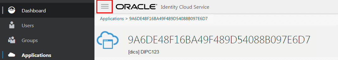 - While you are still logged in as DomainAdmin, from the Applications page of Identity Cloud Service, click the Display the Navigation Drawer menu and then click My Services.