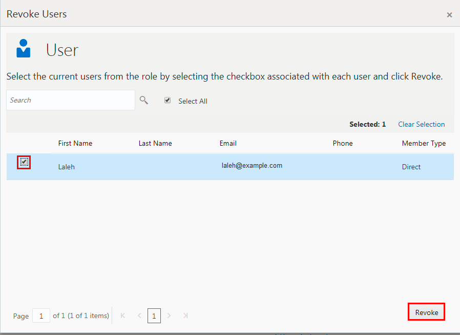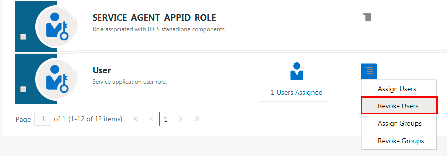 - In the action menu of the User role, click Revoke Users.
