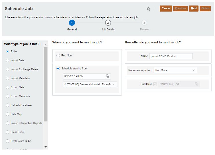- Create an Import Metadata job in Planning to reference in the Groovy rule.