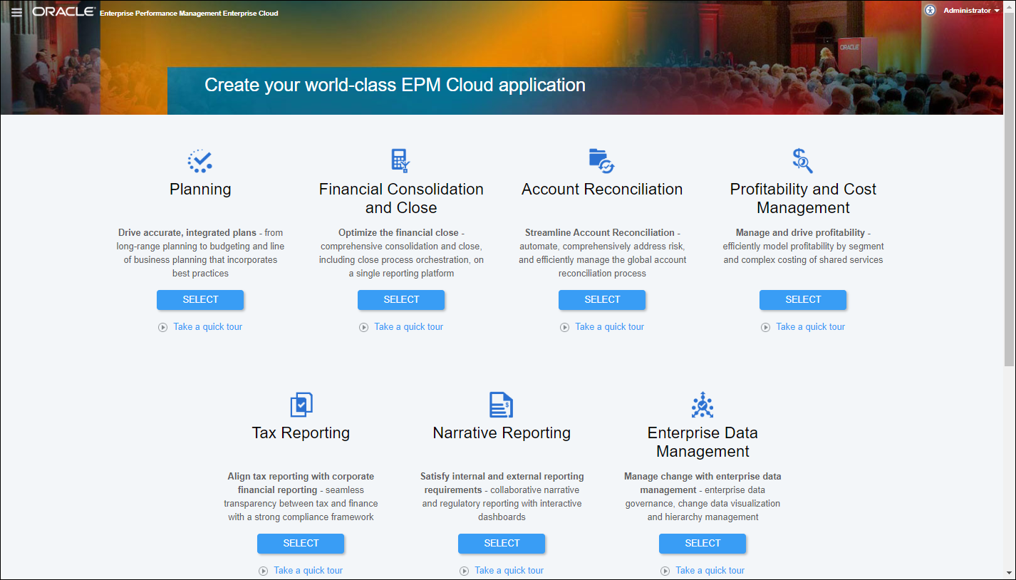 - On the EPM Enterprise Cloud Service landing page, for Planning click Select.