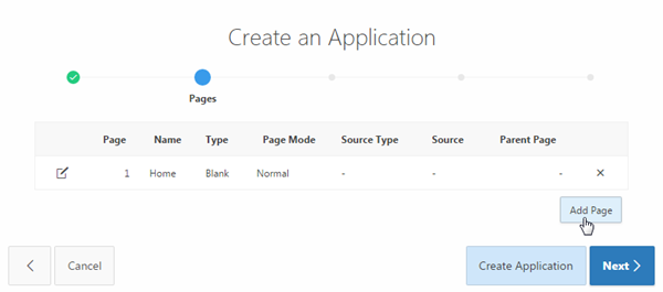 By default, a Home page gets created. To add another page, click Add Page.