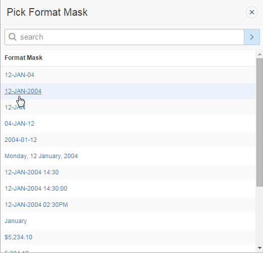 To change the format of PROJECT_DEADLINE, click the List of Values icon for Format Mask, under Appearance, .