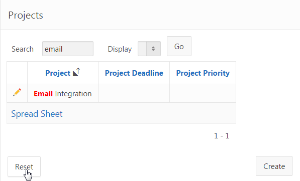 You notice that the title is now changed to Projects. You can search projects by entering a key word in the search text box. Enter email for Search, and click Go.