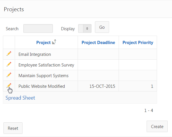 All the records are displayed again. Click the edit icon in front of the row for Public Website Modified project.