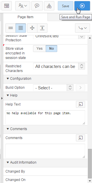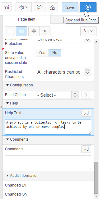 In its property editor, under Help, enter some text in Help Text. Click the Save and Run Page icon.