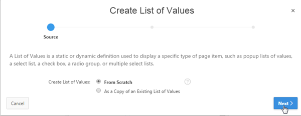 For Create List of Values, retain the default value, From Scratch, and click Next >.