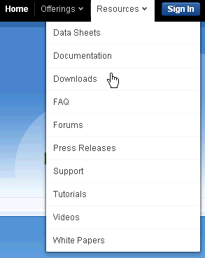 Once there, from the Resources drop-down list, select Downloads.