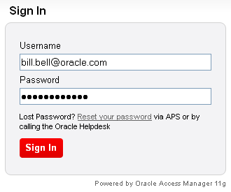The Username that is used to log in is: bill.bell@oracle.com.