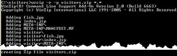 After the new zip file has been created, rename it visitors.war. This is the web application archive file that you will deploy.