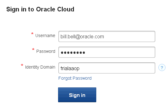 The Identity Domain is: trialaaop. (Yours will be different.)